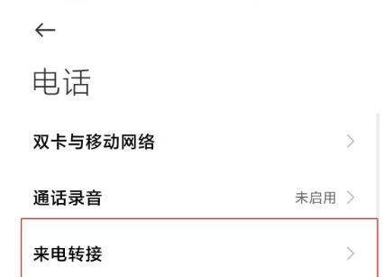 步骤二:选择来电转接选项在设置菜单中,找到并点击【来电转接】功能。