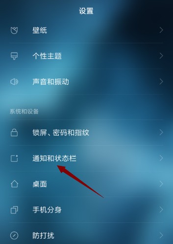 1、首先进入手机的“设置”里面,找到“通知和状态栏”的选项,点击进入