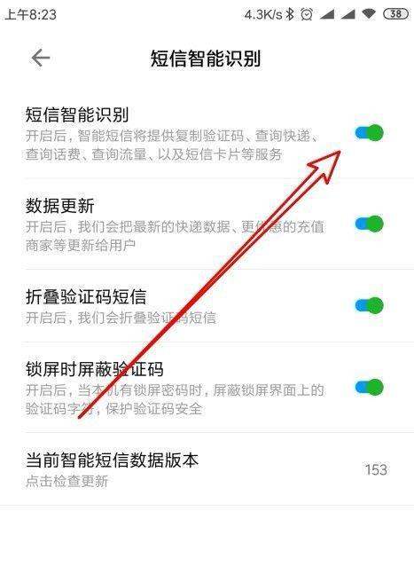 开启功能按钮:在“短信智能识别”页面中,找到功能开关按钮(通常为滑动式开关),将按钮从“关闭”状态滑动至“开启”状态,此时功能即生效。