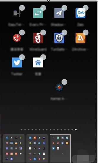 进入桌面管理模式:打开手机桌面,双指捏合屏幕,进入桌面管理模式。