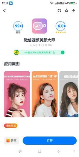 1、各大应用市场搜索“微信视频美颜大师”或“视频通话美颜大师”下载安装。不同应用市场可能名字不同,认清图标!