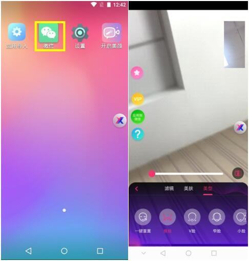 5、在软件中登录微信,就可以随时开始实时美颜的视频聊天了!点击侧边悬浮图标,可以随时调整各种贴纸、滤镜、效果!