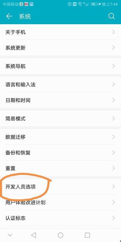 2、点击进入到系统页面,然后找到页面中的“开发人员选项”选项,如下: