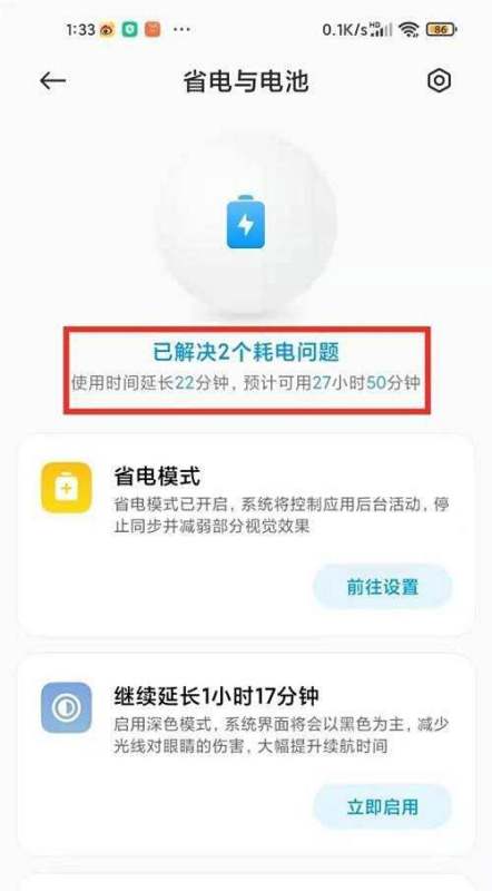 启动耗电检查在【省电与电池】页面中,点击【发现2个耗电问题,立即优化】按钮。系统会自动扫描当前存在的异常耗电项,例如后台应用过度运行、系统服务异常等。