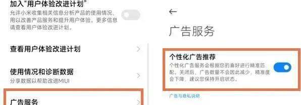 广告服务关闭效果:关闭后,系统将不再根据用户行为数据推送个性化广告,但可能仍会显示少量非个性化广告(如公益广告或系统通知类内容)。此操作不会影响系统核心功能使用。