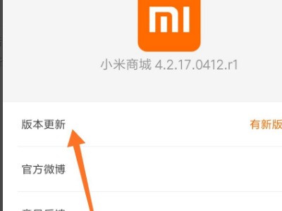 4、进入关于小米商城界面后,可以看到版本更新,点击进入,如下图所示。