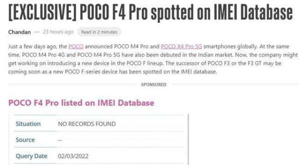 小米POCO F4 Pro已现身IMEI数据库,其型号为22011211G L11,且IMEI数据库显示该机型提供8GB+128GB、8GB+256GB和12GB+256GB三种存储版本。