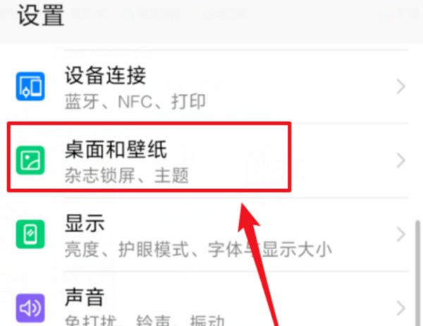 3、进入问桌面和壁纸页面之后,选择点击“桌面设置”选项,如下图所答示。