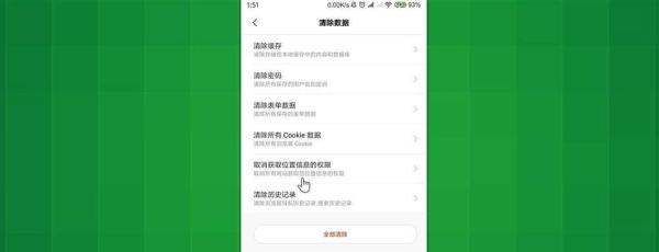 取消位置权限:在清除数据页面中,找到“取消获取位置信息的权限”选项并点击。
