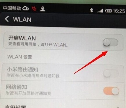 3、进入WLAN界面后点击开启WLAN的开关按钮。