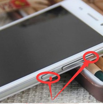 1、两只手指同时摁住手机的声音键上键和电源开关键。