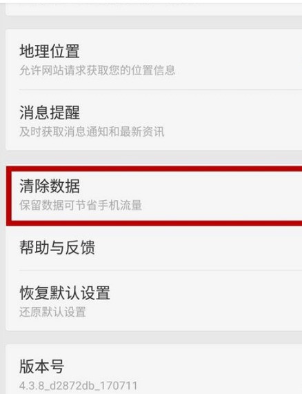 4、之后我们即可看到很对设置的选项,我们点击里面的清除数据选项,如图所示。