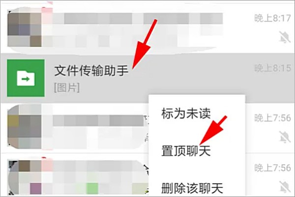 1、为了方便使用文件传输助手,可以长按文件助手置顶。