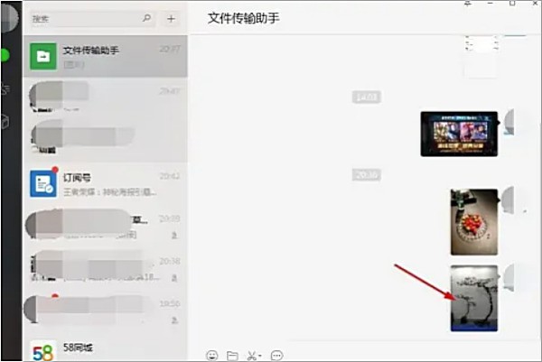 4、打开电脑版微信,进入到文件传输助手聊天界面,鼠标右键点击手机传输来的照片。