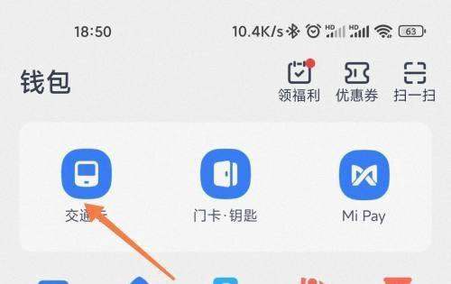 进入钱包APP的交通卡页面打开小米手机自带的钱包APP,在首页或功能列表中找到【交通卡】选项并点击进入。