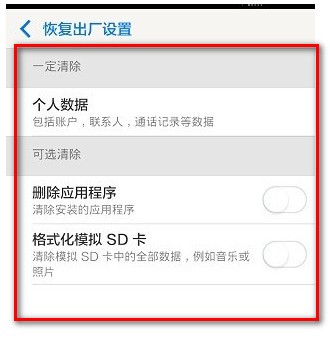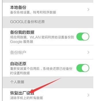 5.系统备份完之后就可以选择恢复出厂设置,根据需求删除相关应用或者数据。这样就可以了,