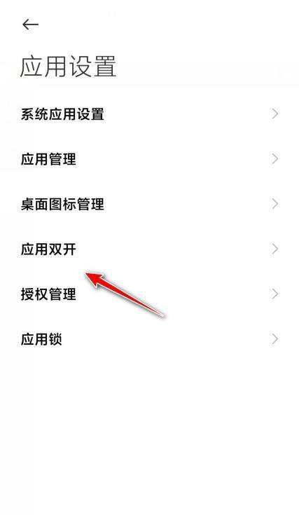 选择应用双开:在应用设置界面中,找到并点击“应用双开”选项。