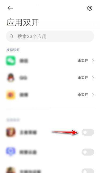 选择应用并开启分身:在应用双开界面中,会列出支持分身功能的应用列表,选择想要开启分身的应用,打开其对应的应用双开开关即可。