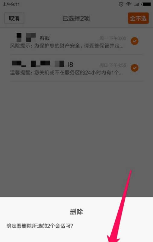 执行删除操作:勾选需要删除的短信(可单选或多选),点击界面右下角的“删除”按钮,确认后即可删除。