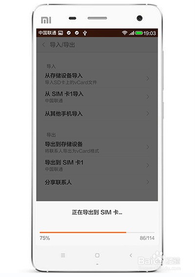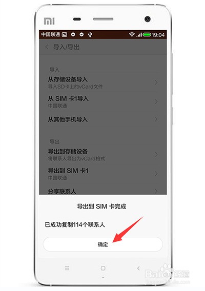 4. 然后再选择导出到SIM卡 。提示:是否要确定导出,点击确定。