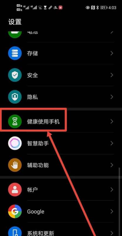 第二步:选择“健康使用手机”功能在设置菜单中滑动查找“健康使用手机”选项,点击进入功能页面。