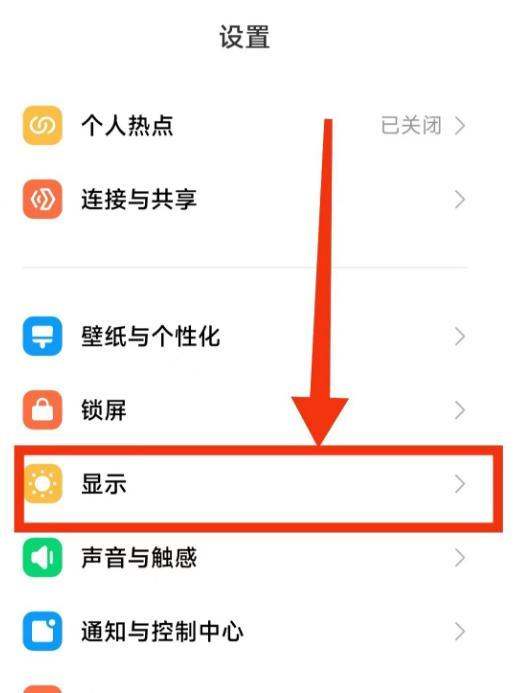 步骤2:进入显示设置在设置页面中,找到并点击显示选项,进入显示相关功能界面。