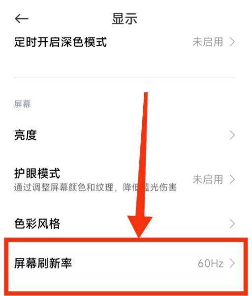 步骤3:选择屏幕刷新率在显示设置页面中,点击屏幕刷新率选项,进入刷新率调节界面。