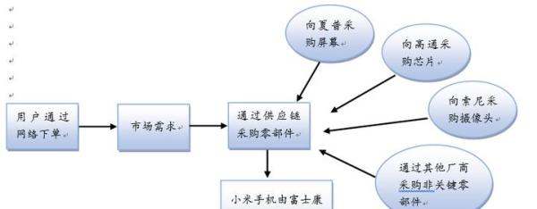 小米手机的生产模式可以称之为“类PC生产”,即按需定制。用户通过网络下单,小米根据市场需求采购零部件,如向夏普采购屏幕、向高通采购芯片、向索尼采购摄像头等,再通过富士康和英华达代工完成组装。这种生产模式大大缩短了从零部件预订到整机出库的时间,提高了生产效率,同时也降低了库存成本。然而,由于手机供应链比PC产业链更为复杂,很多关键零部件需要提前预订,因此从下单到出货,各种部件的时间不等。