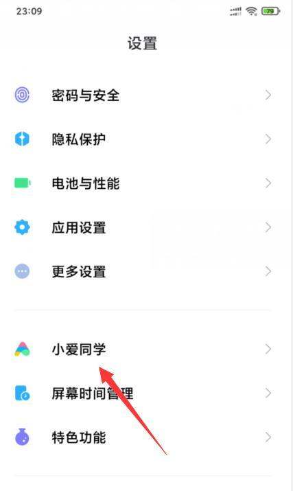 进入手机设置,点击小爱同学打开手机中的“设置”应用,在设置列表中找到并点击“小爱同学”选项。