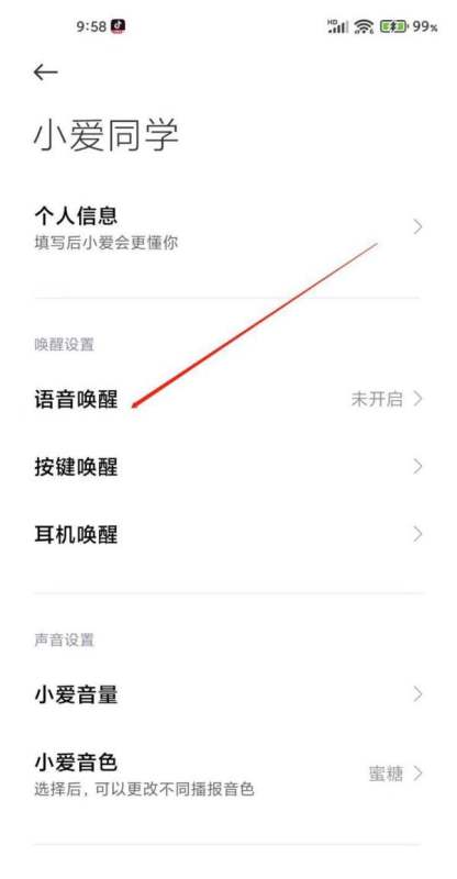 进入小爱同学设置,点击语音唤醒在小爱同学设置页面中,找到“语音唤醒”功能入口并点击进入。