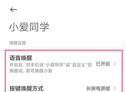 电源键唤醒同样在【小爱同学】设置界面中,选择【长按电源键唤醒】功能。开启后,长按手机侧边的电源键约1秒,即可快速唤醒小爱同学。