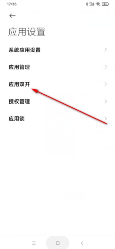 3、打开应用设置页面后,点击应用双开,如图所示。