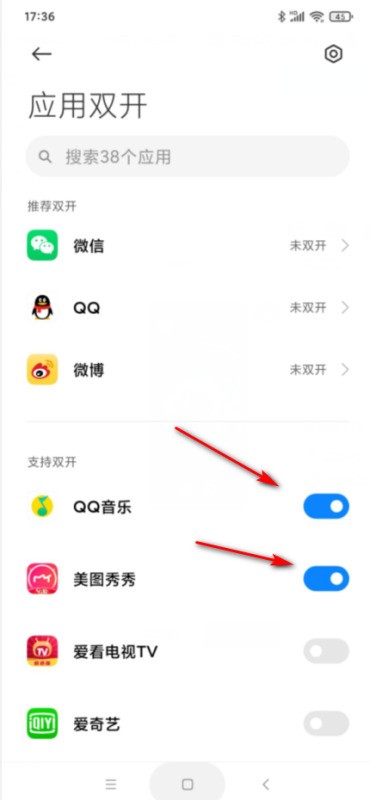 4、打开应用双开页面后,打开QQ音乐和美图秀秀,如图所示。