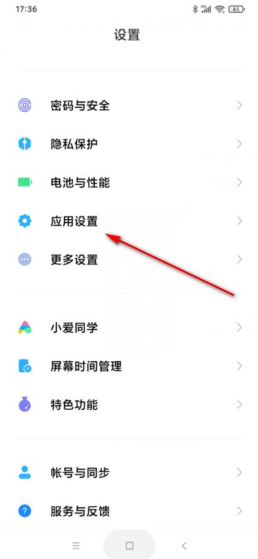 2、软件安装好后,打开手机中的设置,然后点击应用设置。