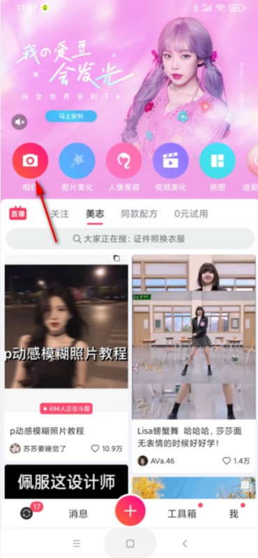 7、回到桌面,打开新出现的美图秀秀图标,然后点击打开相机。