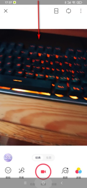 8、打开相机后,开始录像,然后用手指按住手机上面,再往下拉。