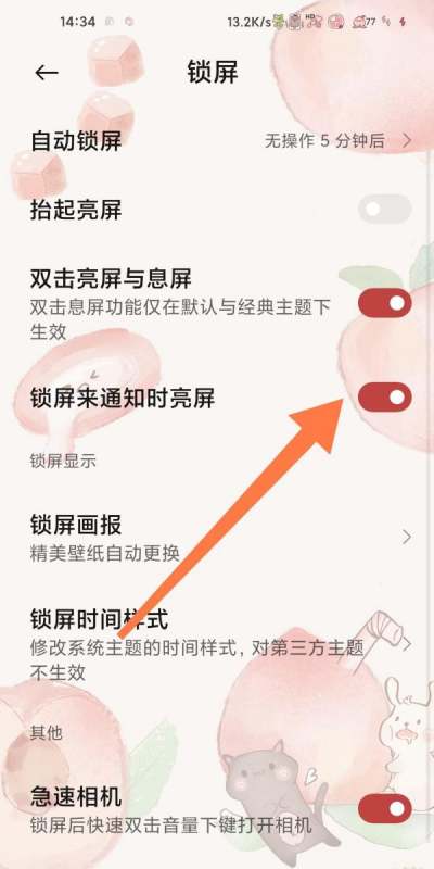 小米手机在锁屏来通知时亮屏,可通过设置中的锁屏选项开启该功能。具体操作步骤如下: