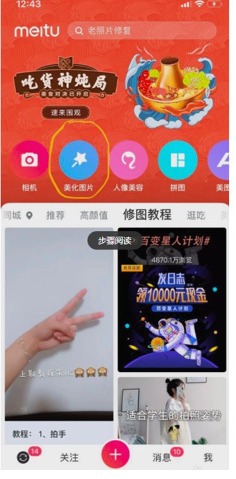1. 打开手机里的美图秀秀,点首页的美图AI