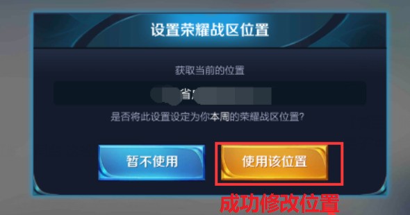 5、点击后会有位置修改确认弹窗,此时点击“使用该位置”即可成功将王者荣耀的游戏位置进行更改。