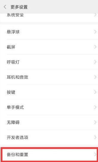 1,依次进入“设置”-“更多设置”界面,找到“备份与重置”项点击进入。