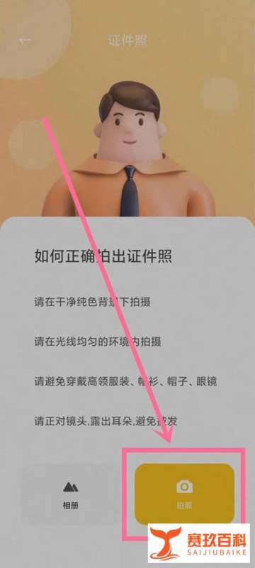 核心操作路径:相册推荐页→证件照功能入口→拍照模式→完成拍摄