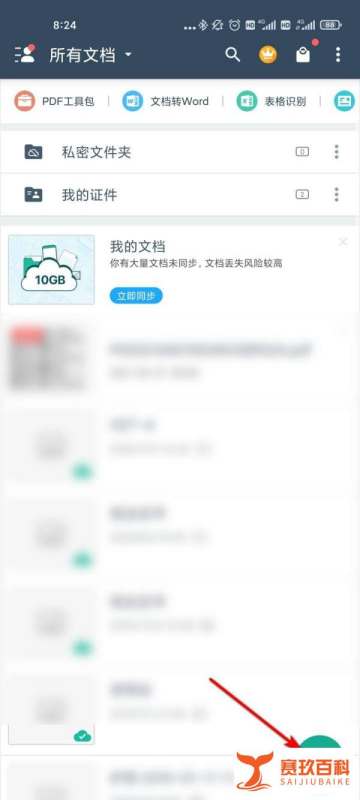 打开软件:在手机上启动“扫描全能王”,点击右下角箭头所指处。