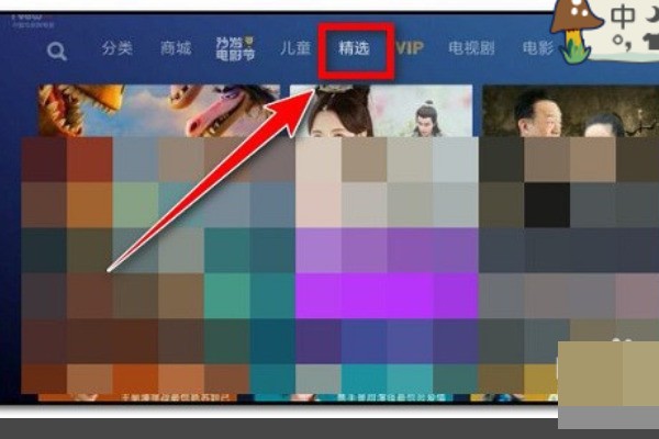 1、开启电视和小米盒子,选择到“精选”界面。如下图所示。