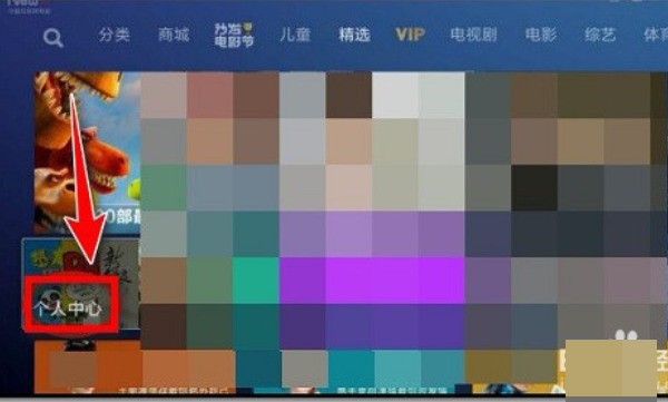 2、遥控器移至“个人中心”,并点击。如下图所示。