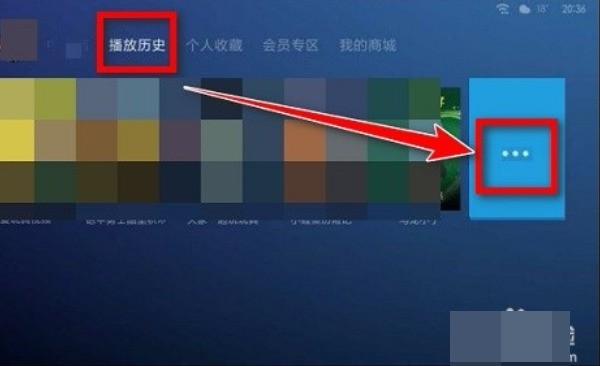 3、选择“播放历史”中“...”更多标识。如下图所示。