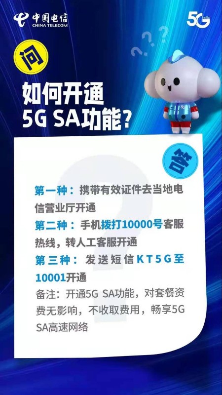 5G SA(Standalone,独立组网),采用5G核心网络架构,拥有 5G NR完整的使用和控制能力。5G SA网络可提供高速率、广连接、低时延的服务能力,同时结合MEC(多接入边缘计算)能力和切片技术能力,让广大用户真正享受到覆盖更广、速率更高(下行速率更顺畅、上行速率显著改善)、时延更低、应用更多的5G网络服务与应用体验。