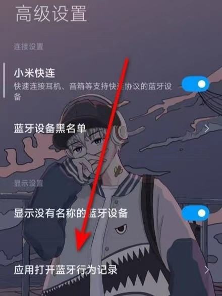 3、在高级蓝牙设置窗口中,继续选择应用行为记录功能,点击打开。