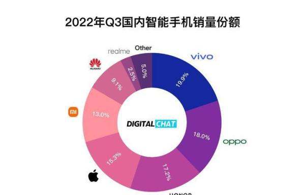 2023年第三季度,国内智能手机市场的销量份额发生了显著变化,各大厂商之间的竞争格局再度洗牌。vivo凭借出色的市场表现,成功登顶销量榜首,而小米则滑落至第五位。以下是详细的市场分析:
