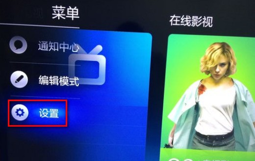 2、点击遥控器上有三道横杠的按键,弹出设置菜单,点击菜单栏中的“设置”选项。
