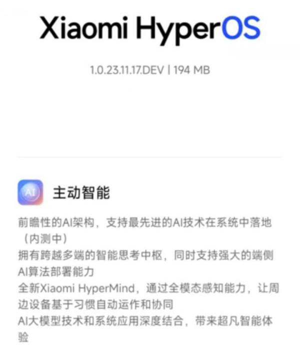 更新版本与大小:澎湃OS 1.0.23.11.17.DEV开发版,安装包大小194MB。